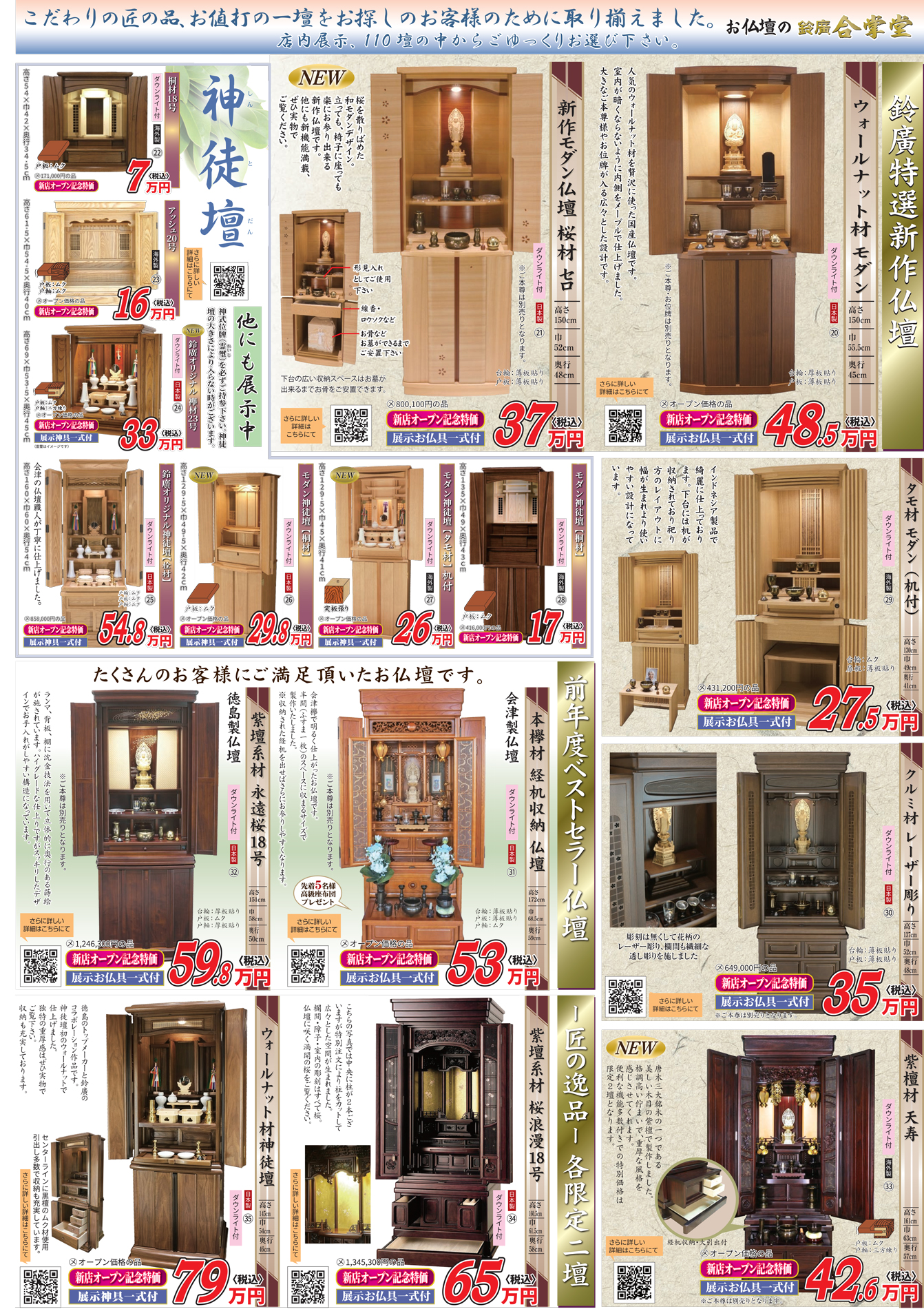 伝統型仏壇・モダン仏壇・祖霊舎(神徒壇)など